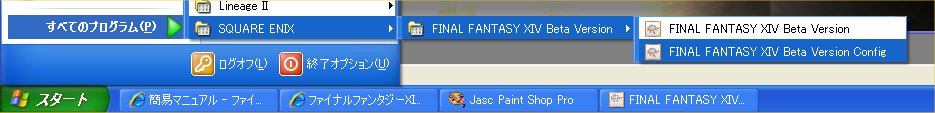 FF14のコンフィグですがWinスタートメニューからスクエニ→FF14とマウスカーソルを