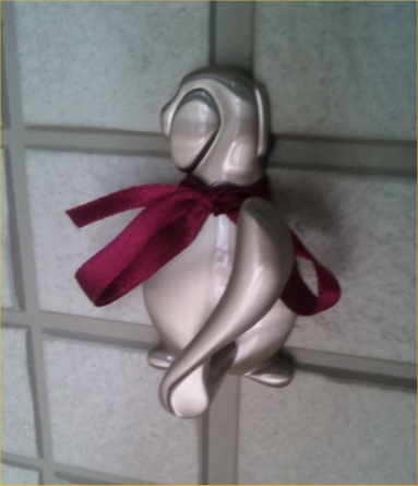 インターホンの下に赤いリボンがついた