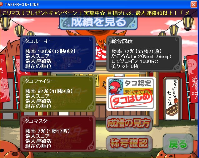 右上の成績で今のLVと