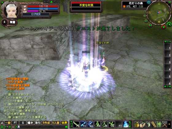 クエスト完了でLVUPです、その瞬間が綺麗ですな。